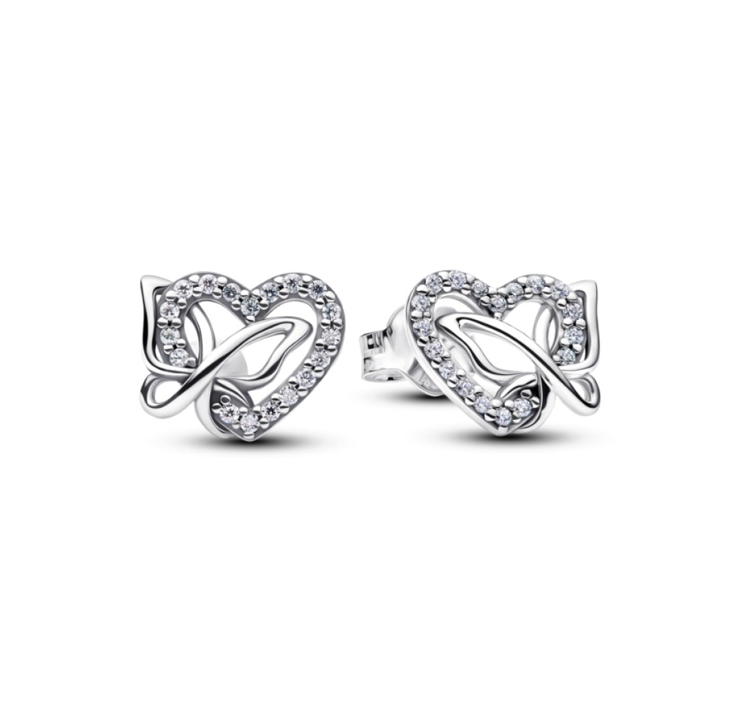 PANDORA 294476C01 Pendientes de plata de ley con forma de corazón y mariposa y circonitas transparentes.