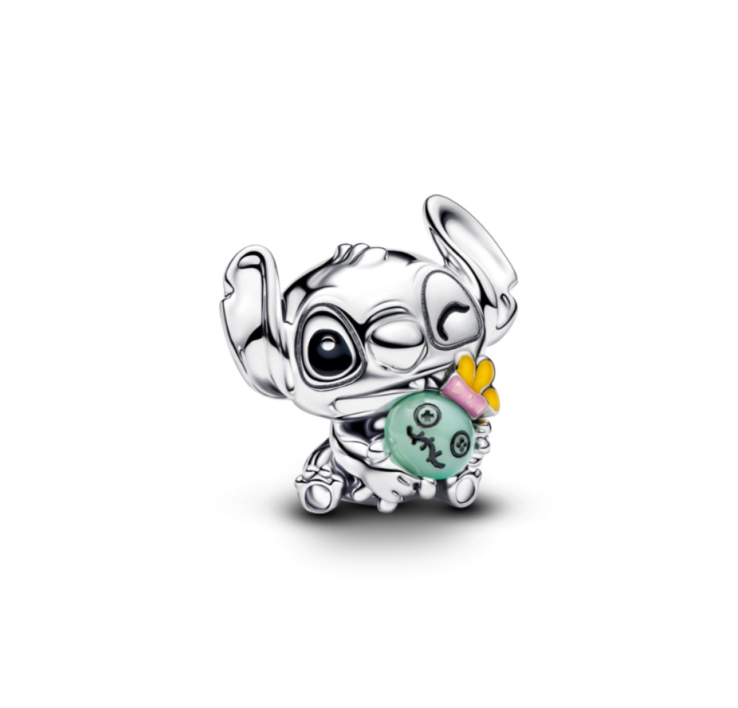 PANDORA 794554C01 Charm de plata de ley de Stitch de Disney con cristal de Murano verde y esmalte negro, rosa y amarillo
