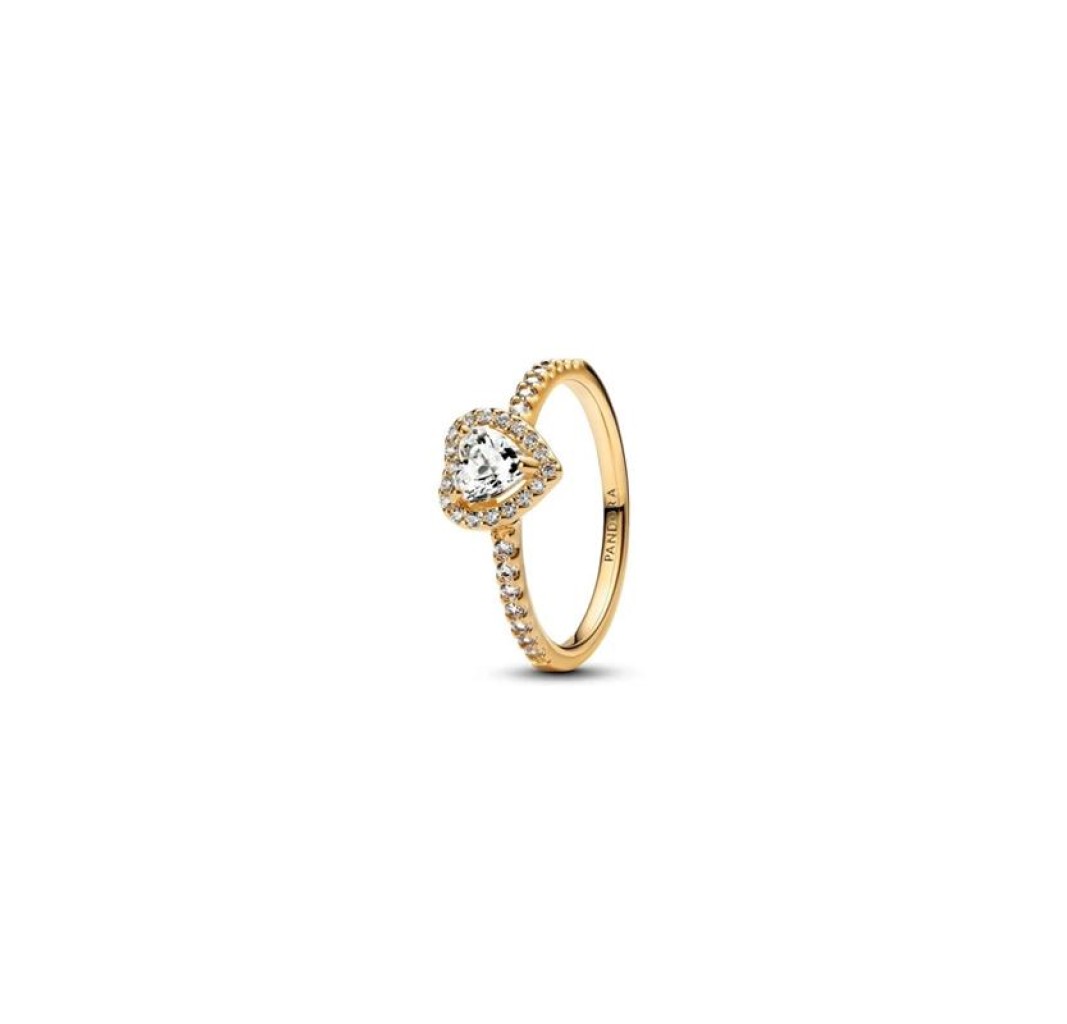 Anillo de corazón bañado en oro de 14k con circonita cúbica transparente