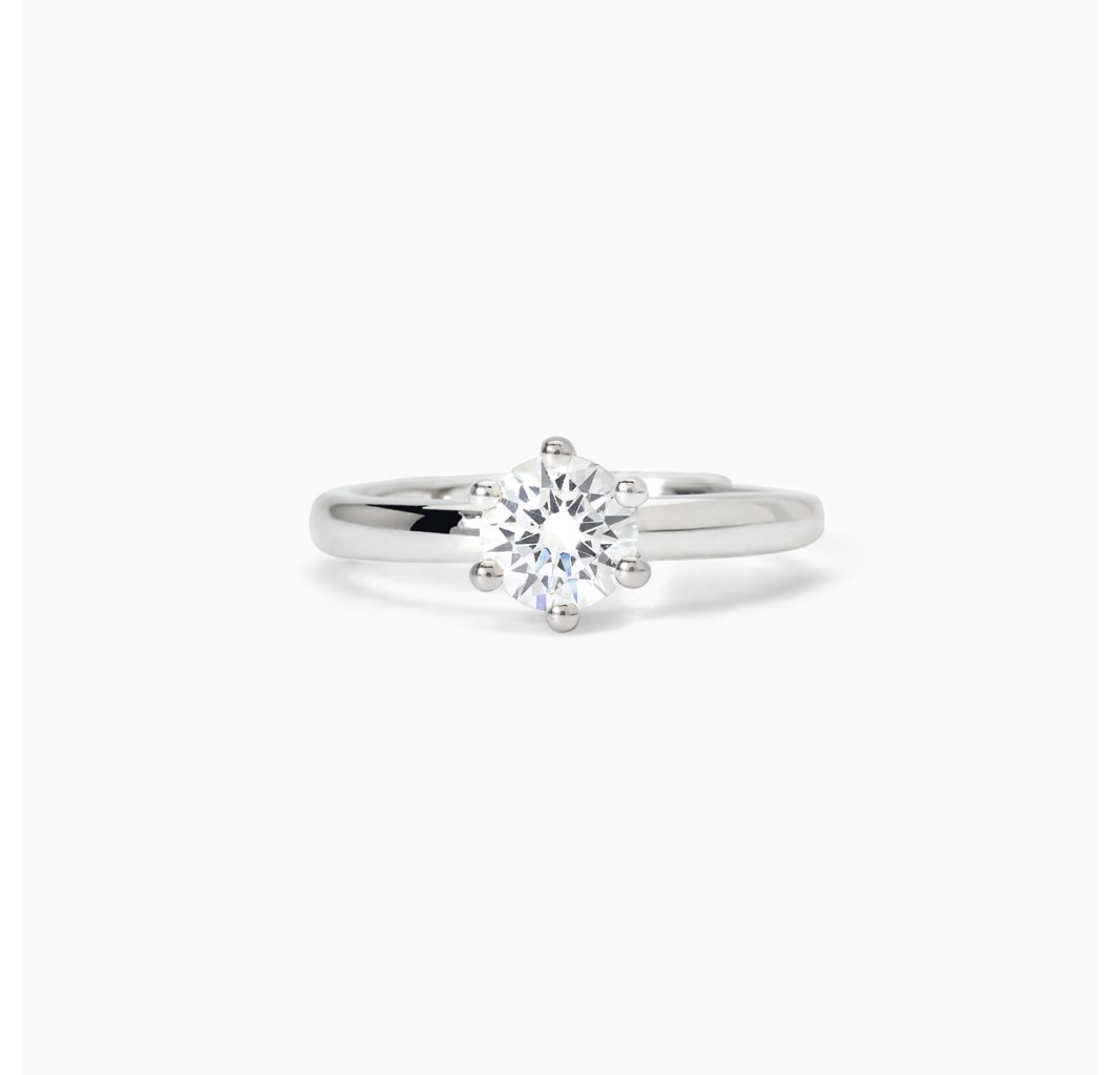 Anillo de plata 925 rodiada con circonita 6 mm, talla ajustable de 11 a 19