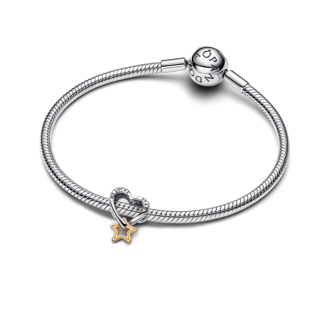 Charm de corazón y estrella en plata esterlina y baño de oro de 14k