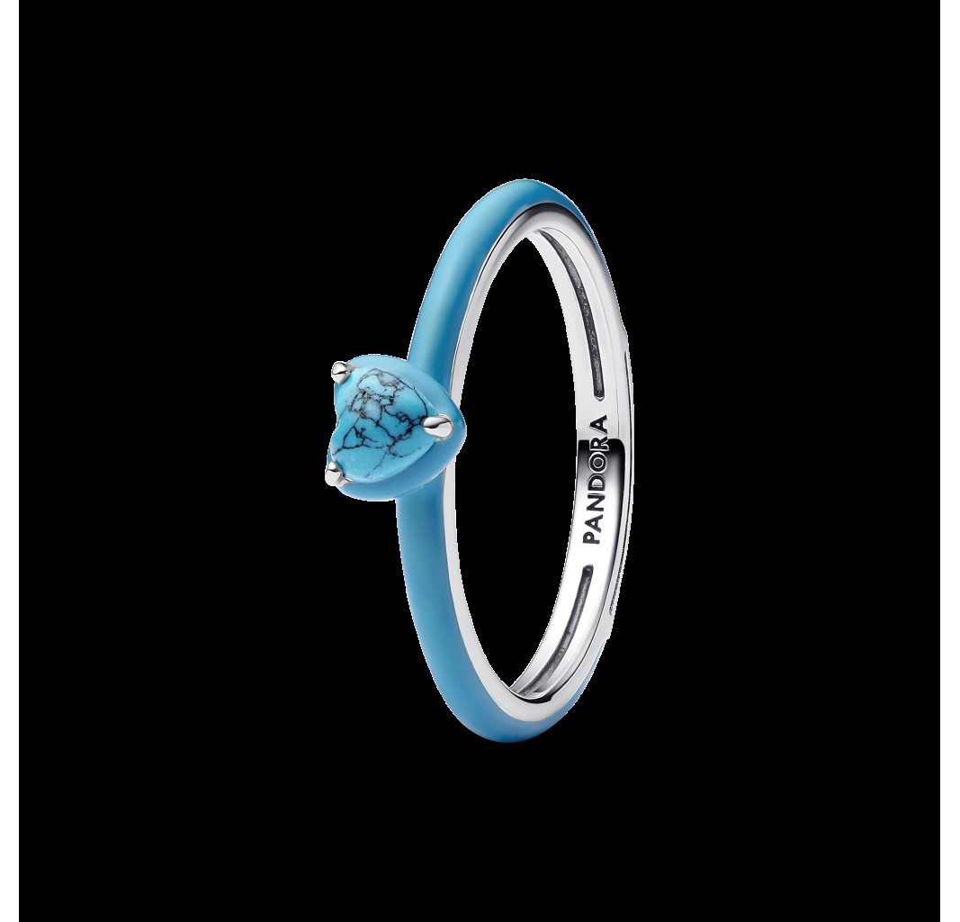 PANDORA 193828C01 Heart sterling silver ring with imitation turquoise and turquoise enamel