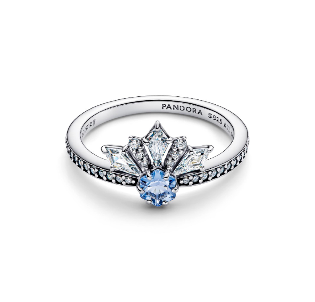 PANDORA 194134C01 Anillo de plata esterlina de Elsa de Disney Frozen con cristal azul agua y circonita cúbica transparente