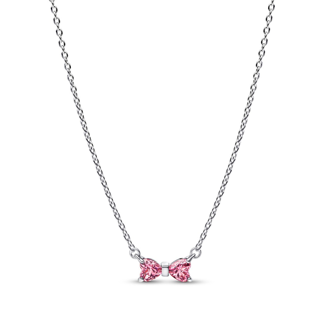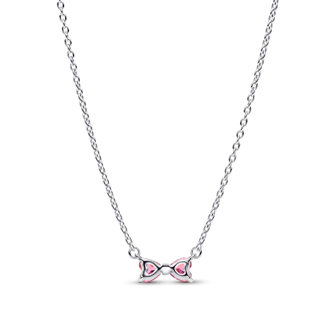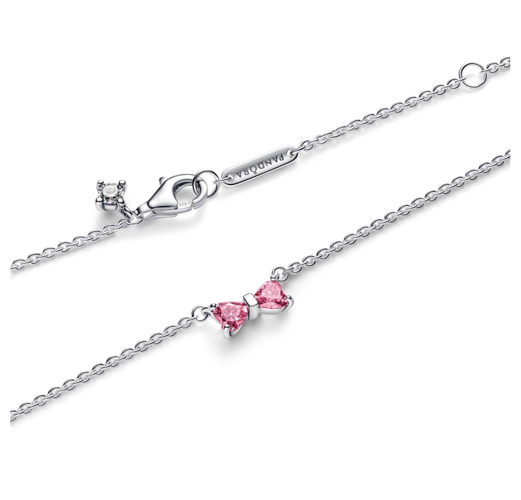 PANDORA 394235C01 Collar de plata de ley con forma de lazo y circonitas cúbicas rosas y transparentes de fantasía
