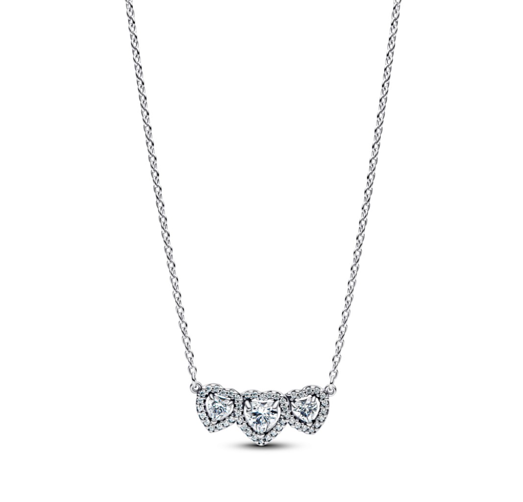 PANDORA 394412C01 Triple heart sterling silver collier with clear cubic zirconia