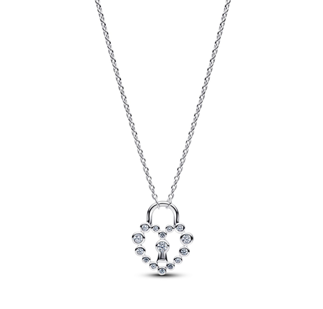 PANDORA 394416C01 Heart padlock sterling silver pendant necklace with clear cubic zirconia