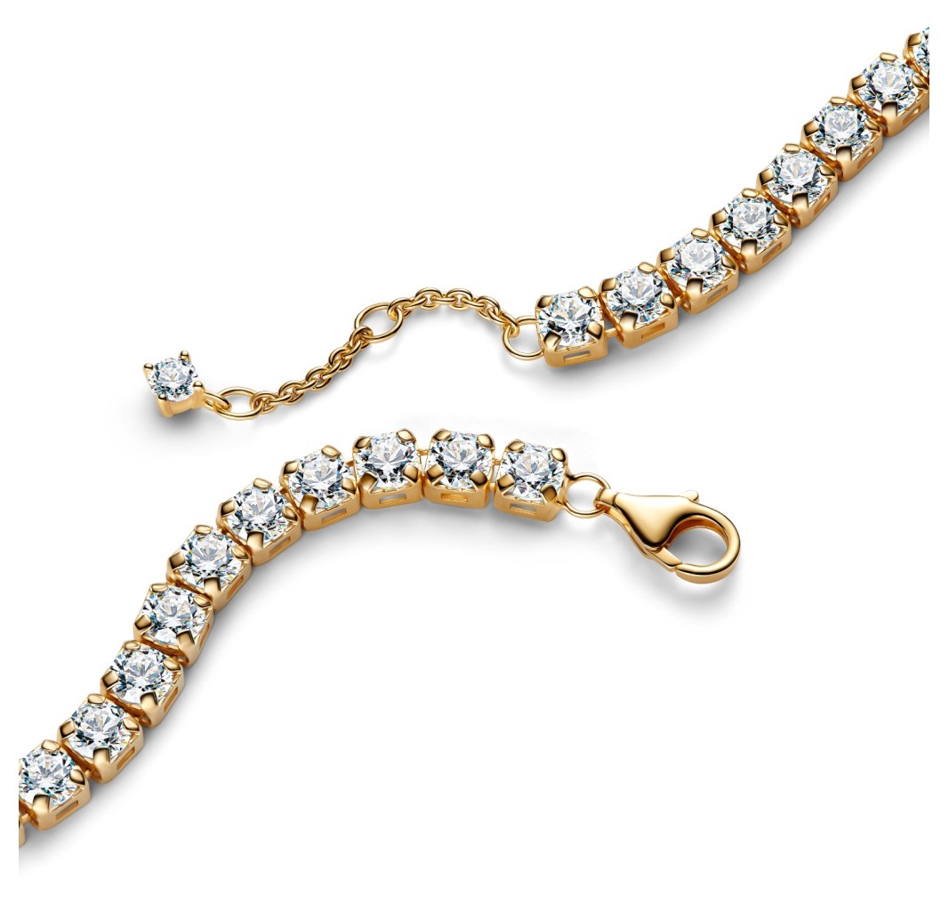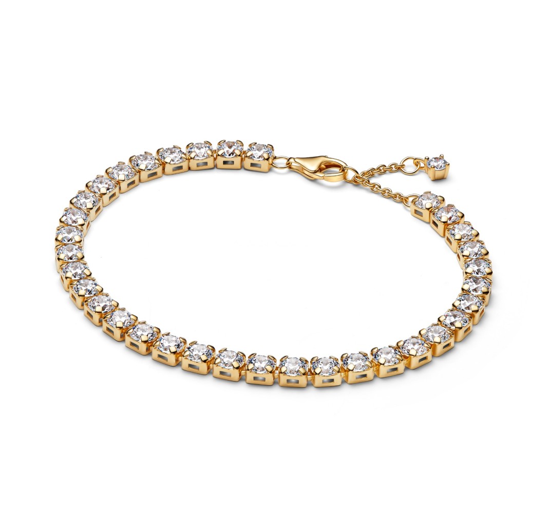 PANDORA 563539C01 Pulsera de tenis bañada en oro de 14k con circonitas cúbicas transparentes