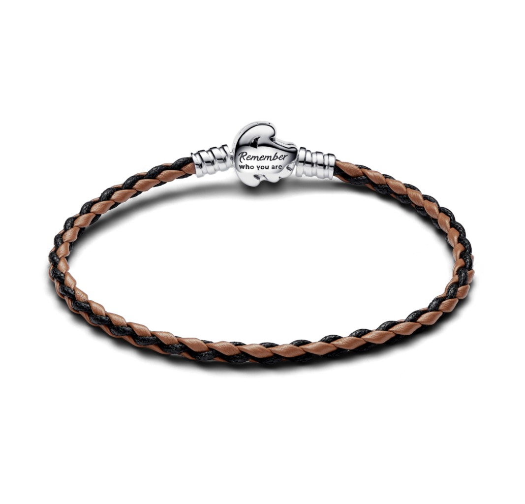 PANDORA 593361C01-S1 Pulsera Disney El Rey León de plata de primera ley con cuero marrón y negro
