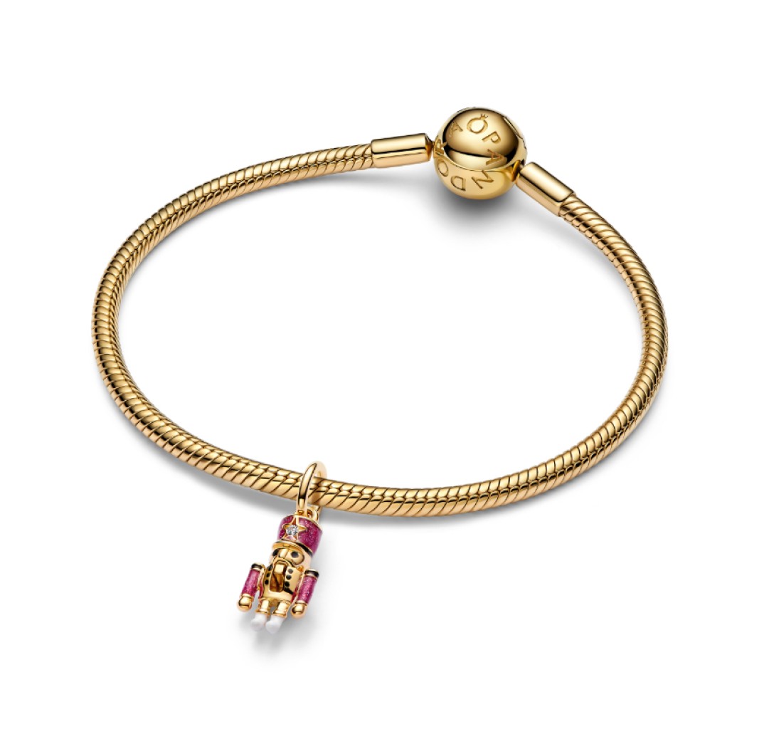 PANDORA 763583C01 Cascanueces colgante chapado en oro de 14k con circonita cúbica transparente y esmalte rosa, negro y blanco brillante.