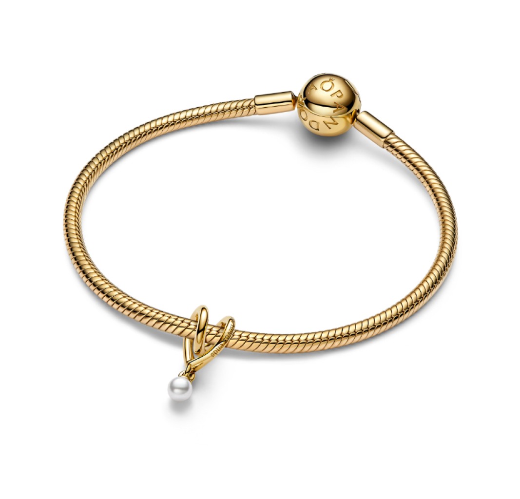 PANDORA 764138C01 Charm de corazón envuelto bañado en oro de 14k con perla artificial lacada en blanco