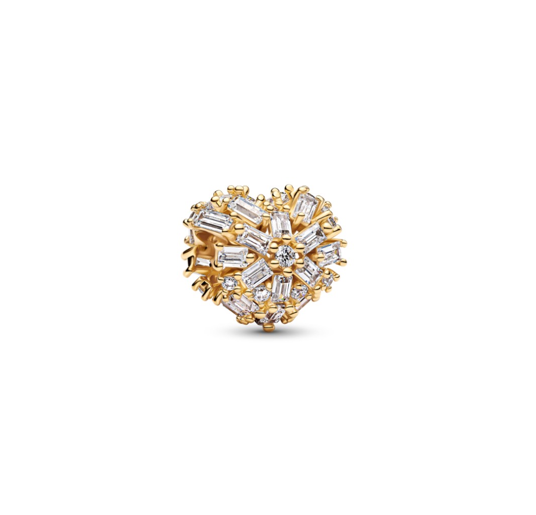 PANDORA 764240C01 Charm de corazón chapado en oro de 14k con circonitas cúbicas transparentes