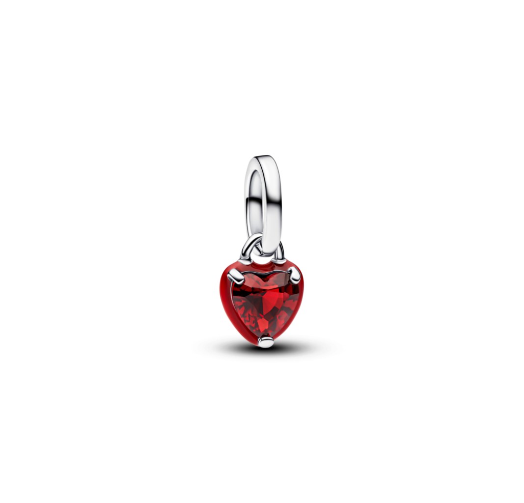 PANDORA 793042C05 Heart sterling silver mini dangle with salsa red crystal and red enamel