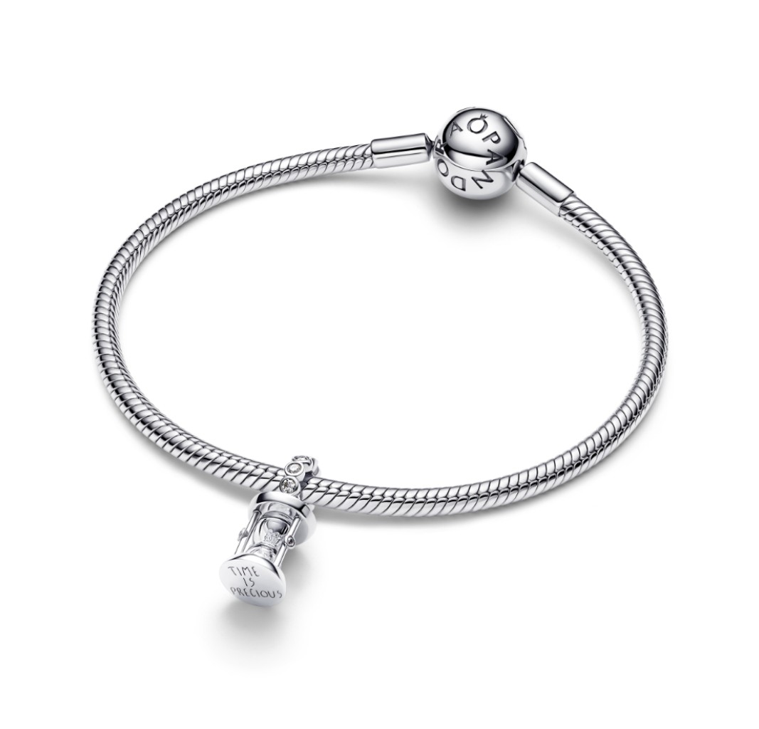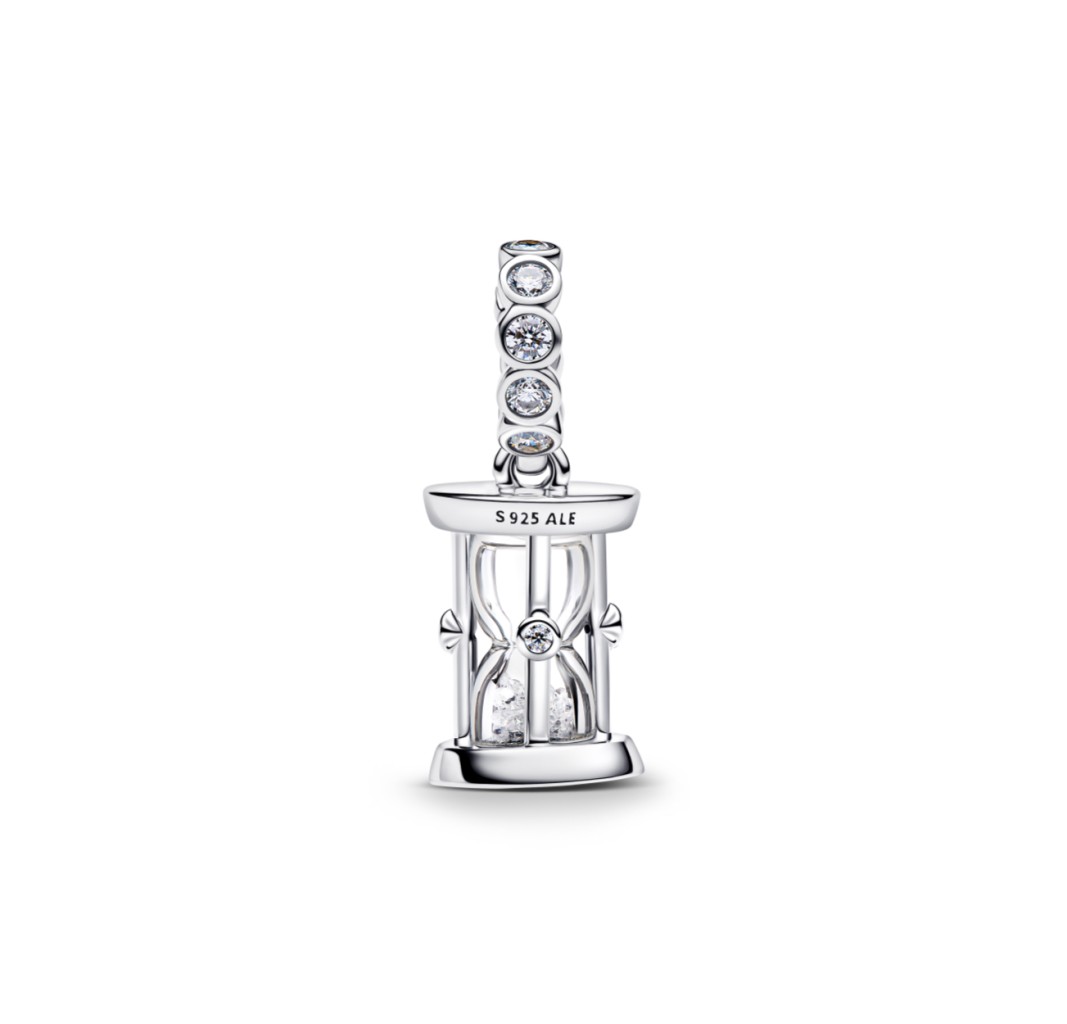 PANDORA 794140C01 Colgante de reloj de arena en plata de ley con circonitas cúbicas transparentes y cristal.