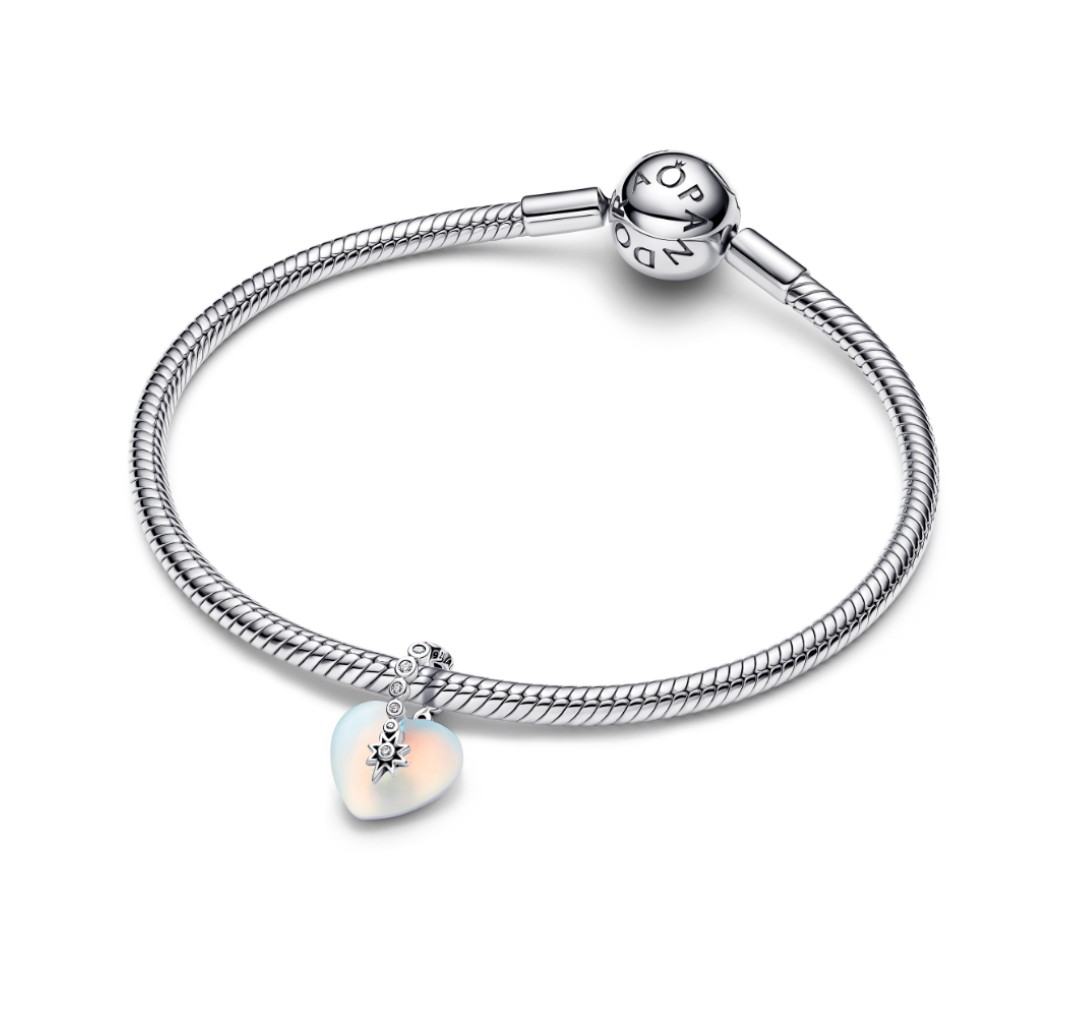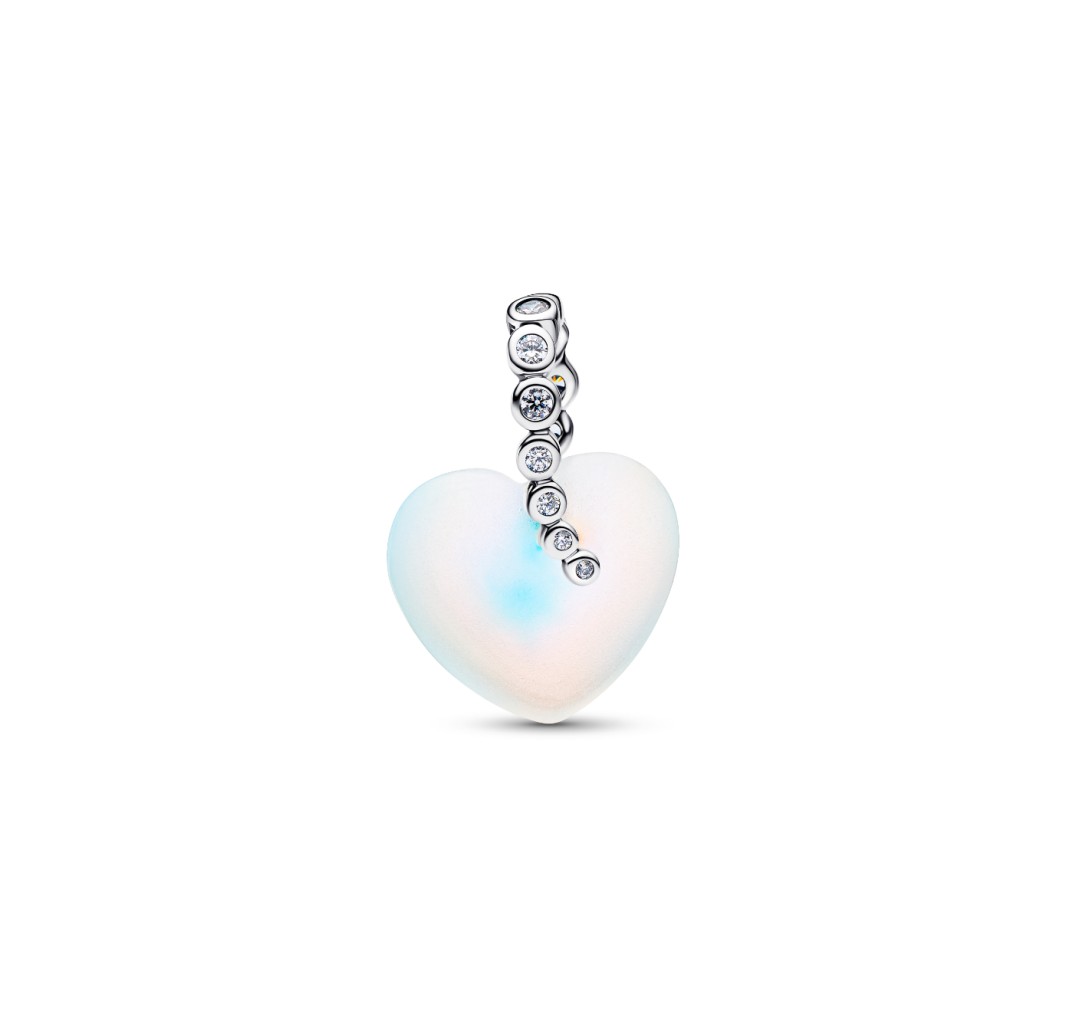 PANDORA 794143C01 Colgante de corazón de plata de ley con circonita cúbica transparente y cristal iridiscente de piedra lunar.