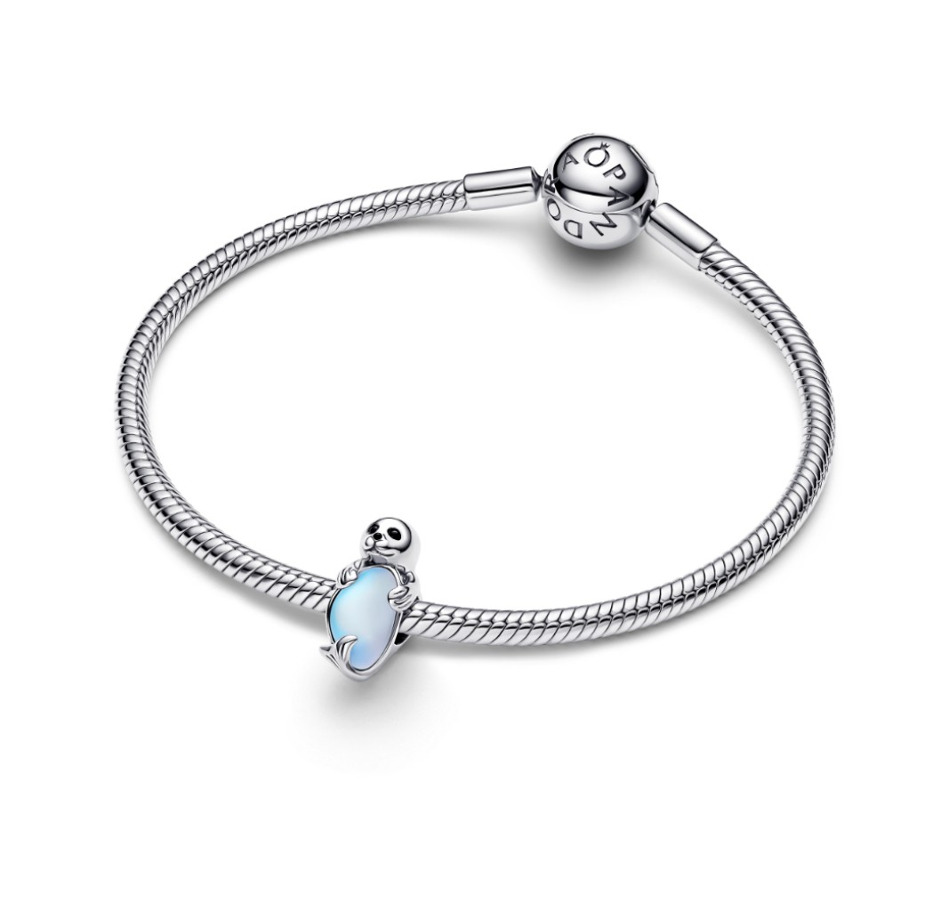 PANDORA 794146C01 Charm de sello en plata de ley con cristal negro, esmalte negro y piedra lunar iridiscente.