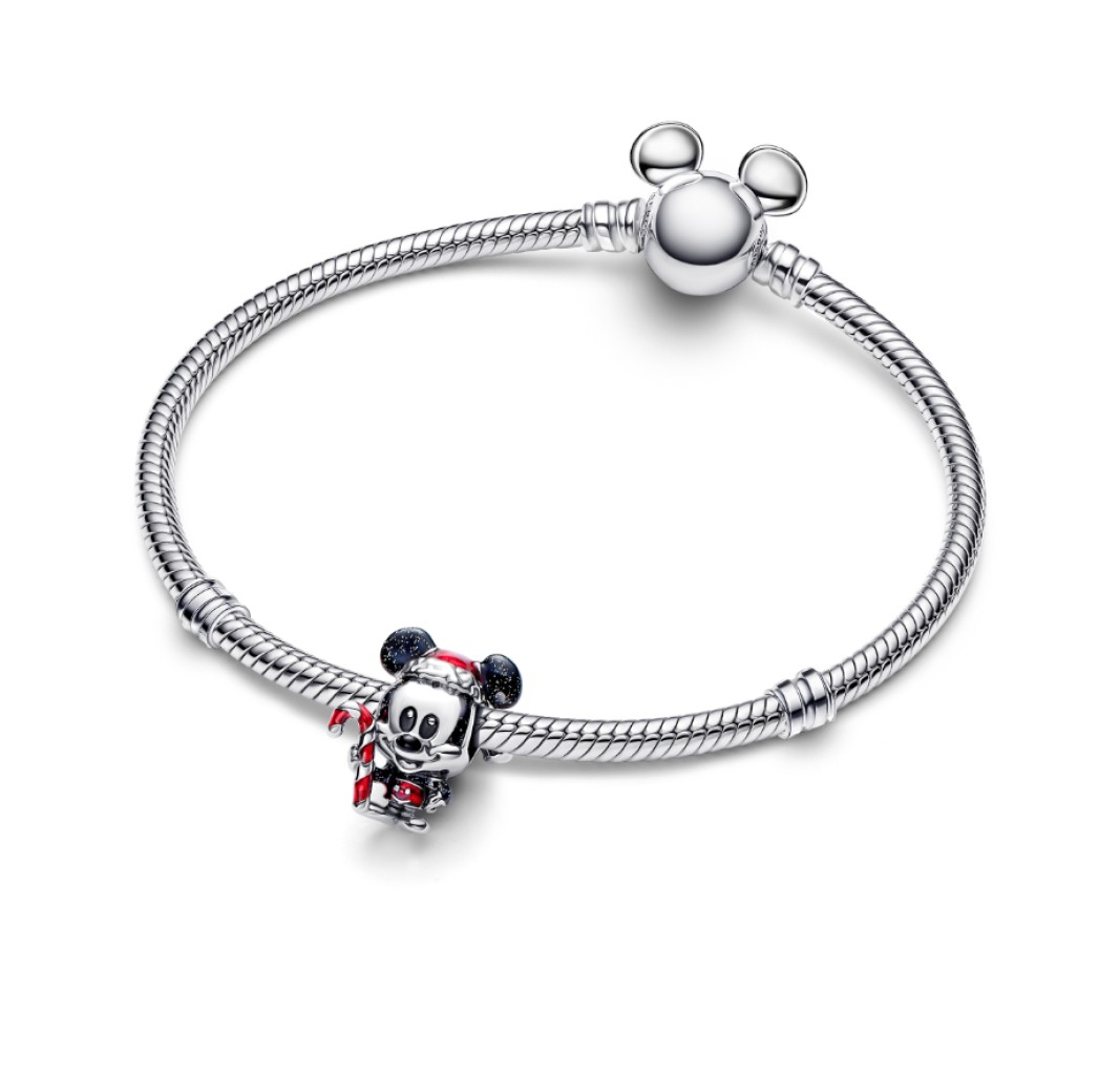 PANDORA 794217C01 Charm de plata esterlina de Mickey Mouse de Disney con esmalte negro y rojo brillante