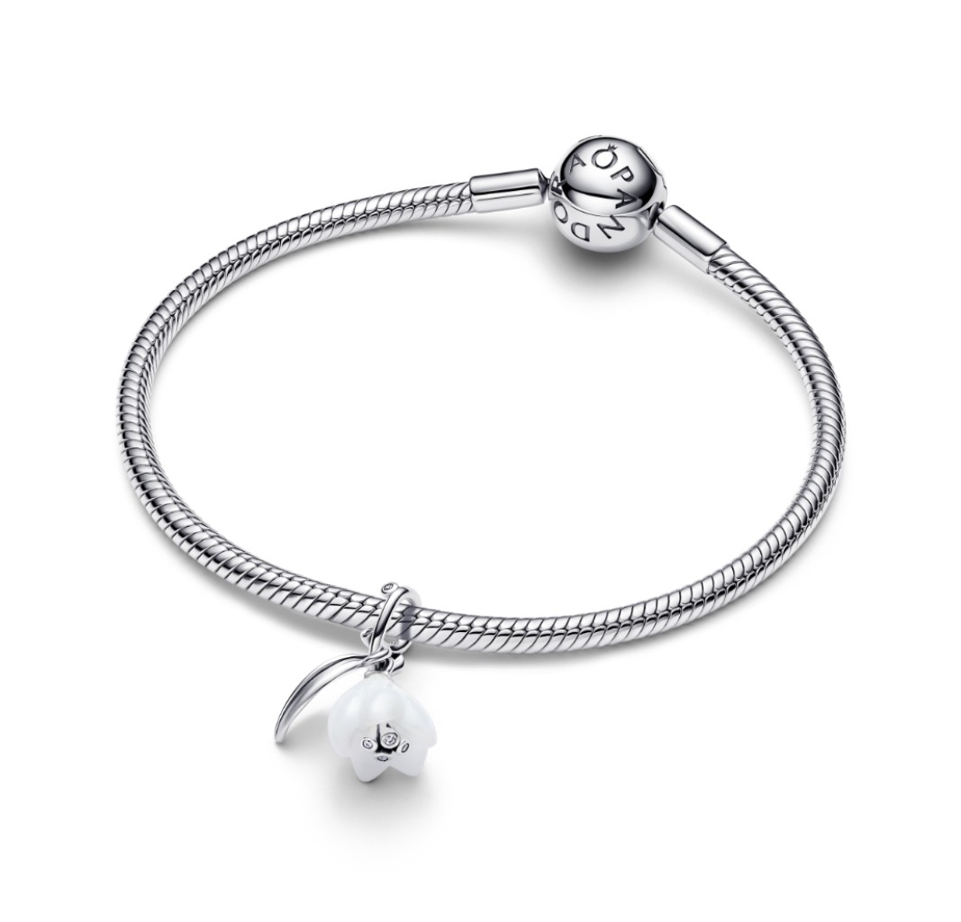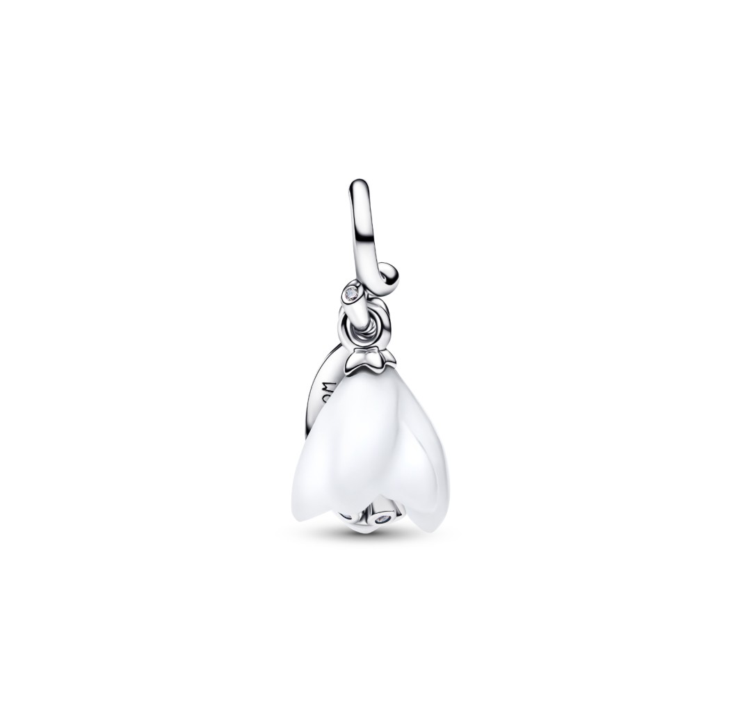 PANDORA 794239C01 Colgante de plata de ley con flor de campanilla de invierno, circonitas cúbicas transparentes y cristal de Murano blanco.