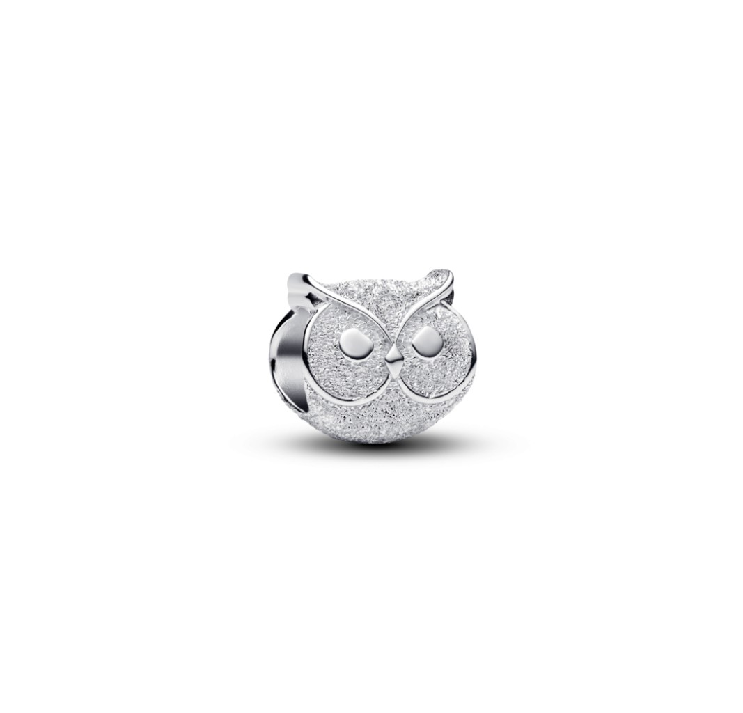 PANDORA 794525C00 Textured owl sterling silver mini charm